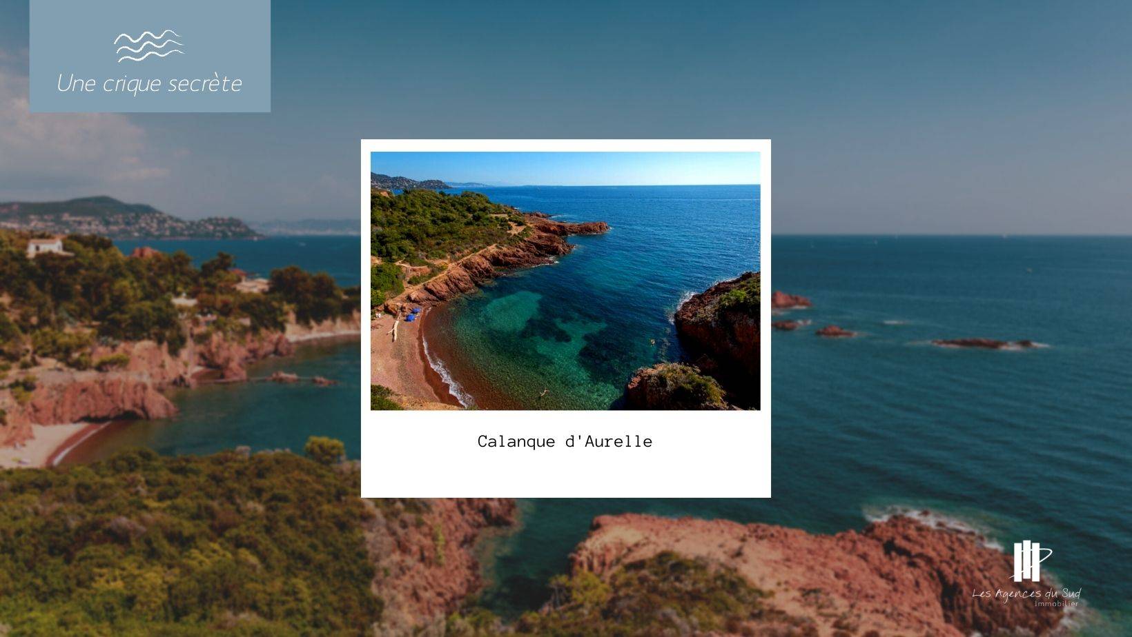 La calanque d'Aurelle : Située au Trayas, elle s’étend sur de galets rouges. Au pied d’un mur de renforcement de la route de la Corniche d’Or, la crique bénéficie d’un cadre intimiste exceptionnel. C’est par des petits escaliers que vous arriverez à la calanque d’Aurelle.