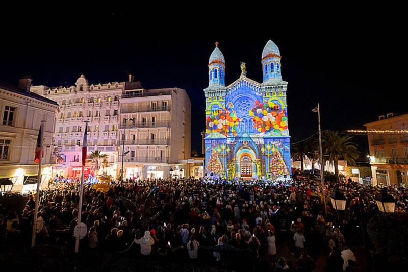 un spectacle son et lumière projeté sur la façade majestueuse de la basilique Notre-Dame-de-la-Victoire,