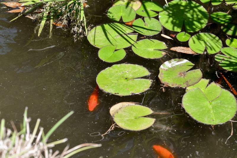 Le jardin tranquille présente des ruisseaux babillants et des étangs sereins remplis de carpes scintillantes et d'autres fascinants mammifères aquatiques, tous prospérant dans des environnements d'eau douce naturellement présents.